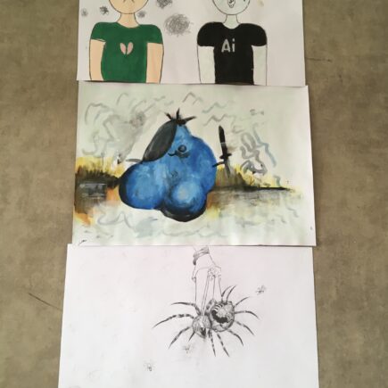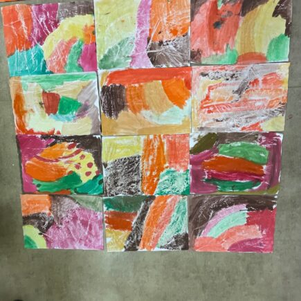 Zkoumali jsme vztah umění a jídla. Více na Padlet nástěnce zde. Potom jsme vytvořili tyto obrazy z luštěnin a těstovin.