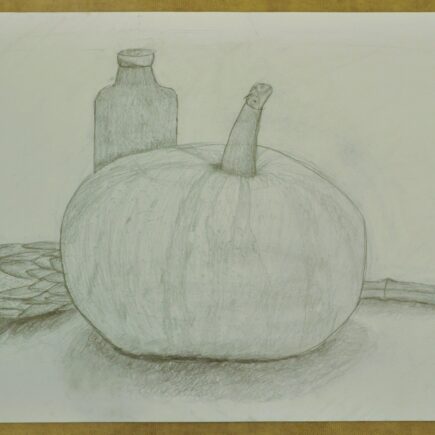 V prvním měsíci jsme zkoumali zákonitosti zobrazování 3D prostoru pomocí perspektivy a kreslili zátiší tužkou.