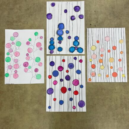 – frotáž listí voskem a následná malba vodovými barvami