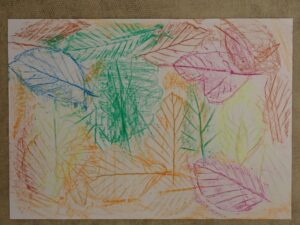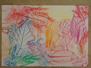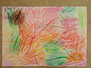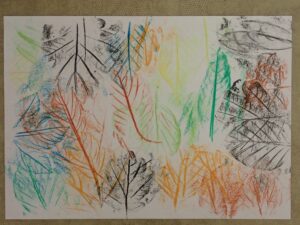 Eva P., Galerie 2024/2025Frotáž listů voskovými bločkyZanechat komentář na Frotáž listů voskovými bločky