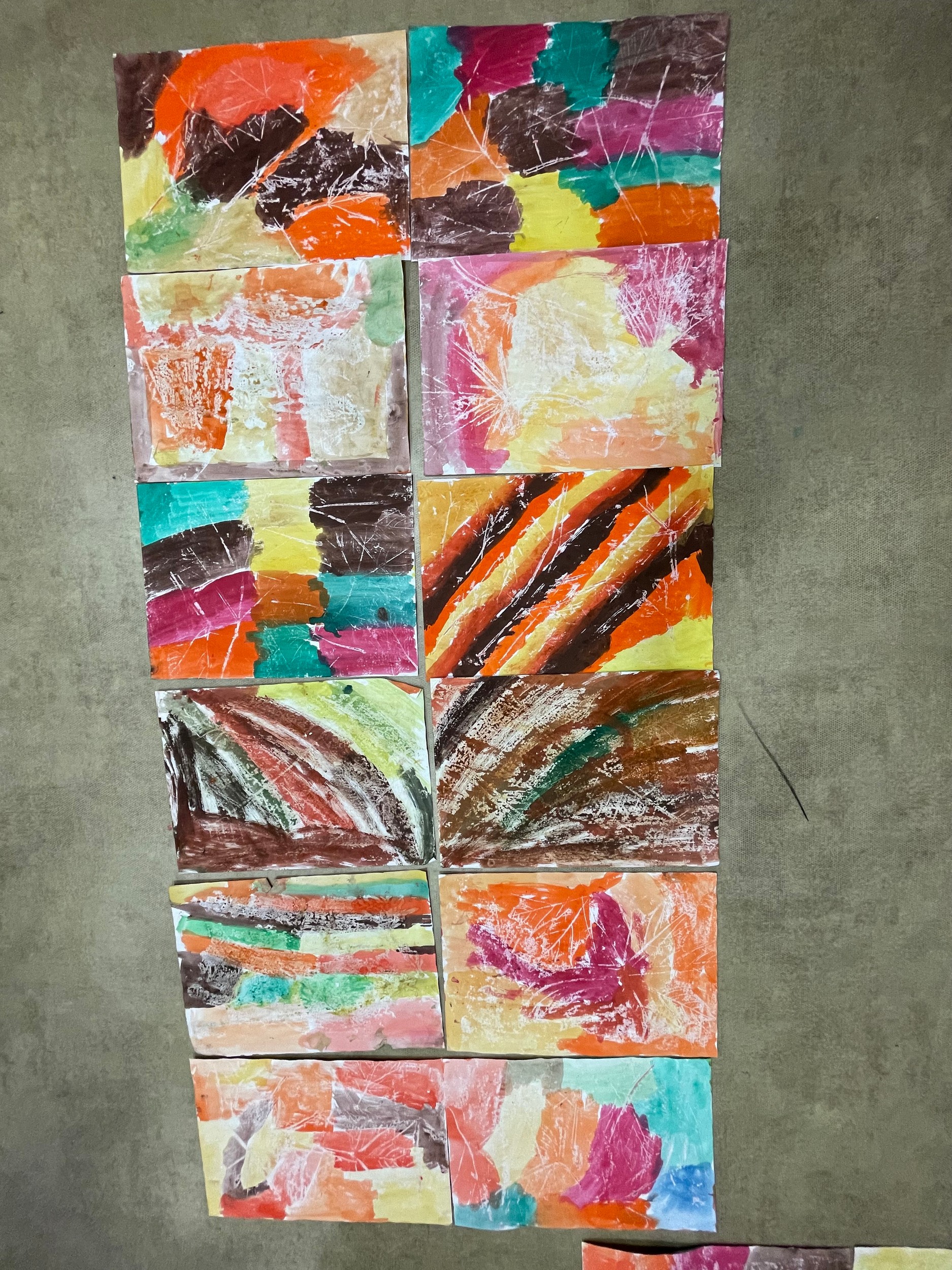 Eva K., Galerie 2025/2026Podzimní hry s barvouZanechat komentář na Podzimní hry s barvou – frotáž listí voskem a následná malba vodovými barvami